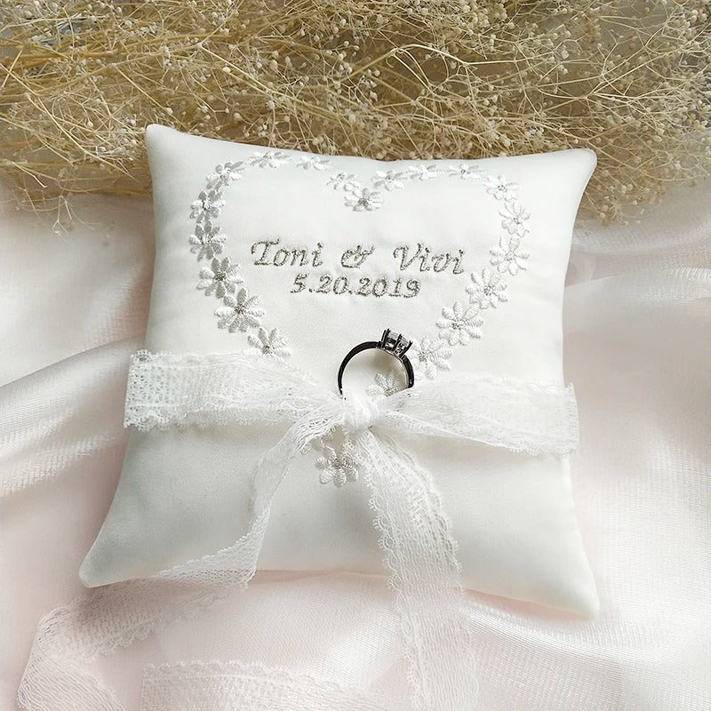 Ajoutez une touche unique et raffinée à votre mariage avec notre coussin d'alliance personnalisé. Conçu pour sublimer l’échange des alliances, ce coussin incarne l’harmonie parfaite entre élégance et originalité.