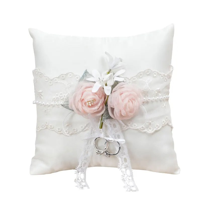 Plongez dans l'univers du mariage champêtre avec notre élégant coussin d'alliance. Conçu pour sublimer votre cérémonie, ce coussin est d’un blanc immaculé, délicatement orné de dentelle romantique et de fleurs artificielles réalistes. Son design raffiné s’intègre parfaitement dans une ambiance bohème, vintage ou rustique.