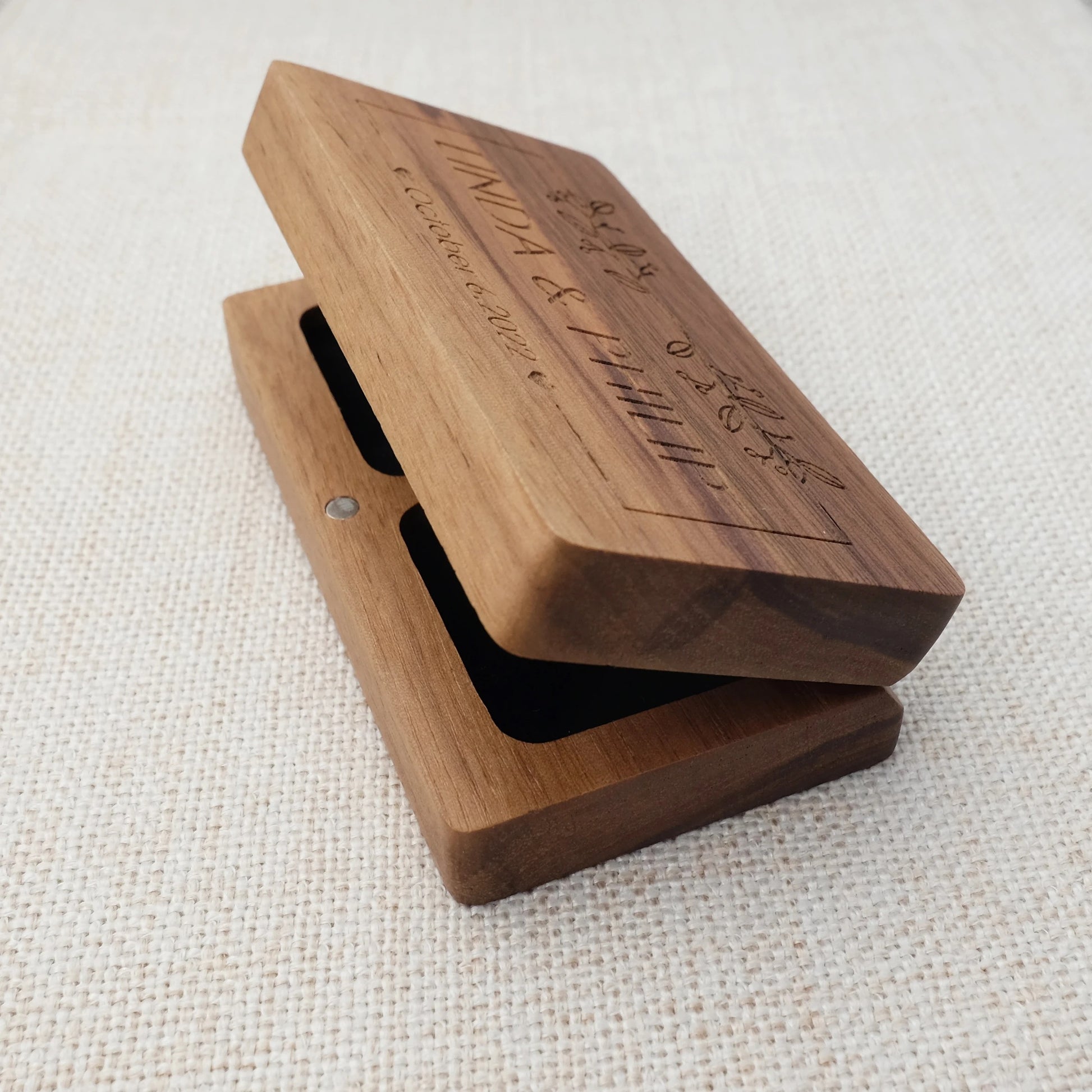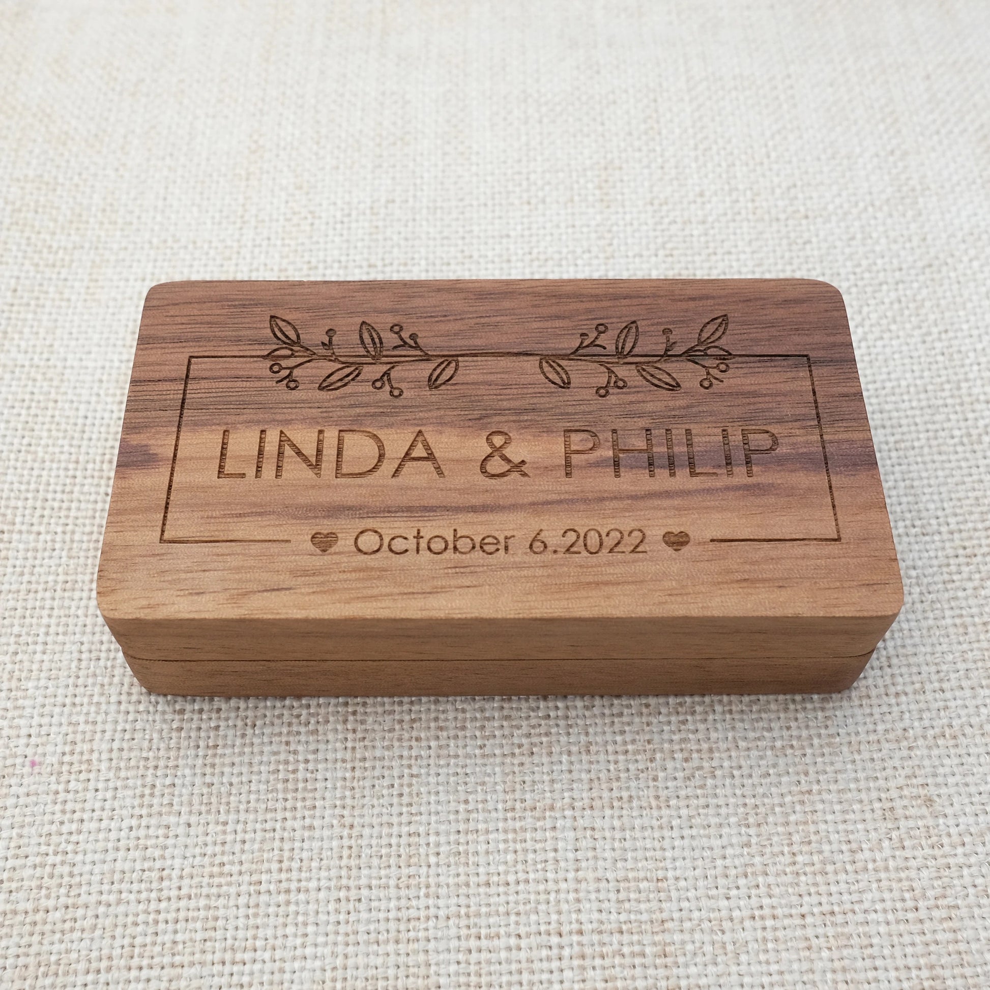 Chaque modèle est personnalisable avec vos prénoms et la date de votre mariage, gravés avec précision pour un rendu durable et raffiné. Cette gravure délicate rend chaque coffret absolument unique — un véritable souvenir à conserver toute une vie.